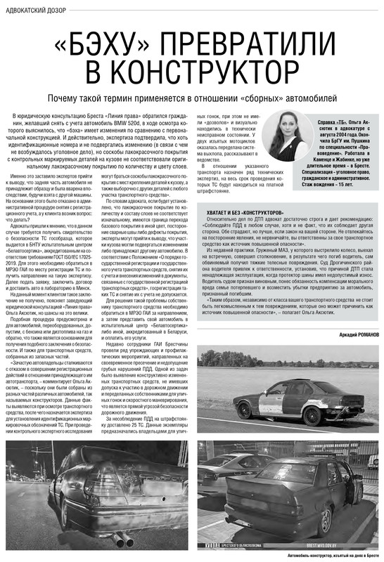 Очередная публикация с участием адвоката Брестской областной коллегии адвокатов на страницах газеты «Транспортный вестник». ТБ_35_20.09.2025 Поделиться: 02.10.2025 Новости коллегии
