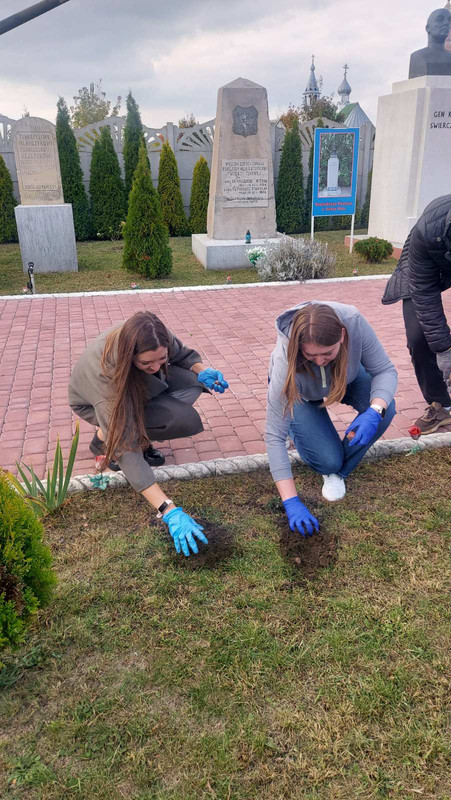 Благодаря дружному совместному труду, Аллея пополнилась бордюром из тюльпанов, у памятников появились яркие пятна осенних хризантем.