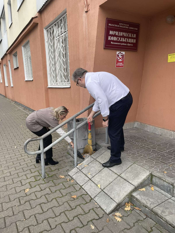 Адвокаты юридических консультаций Брестской областной коллегии повсеместно принимают участие в общереспубликанском субботнике. Ими активно наводится порядок на рабочих местах в помещениях юридических консультаций и на прилегающей к ним территории.
