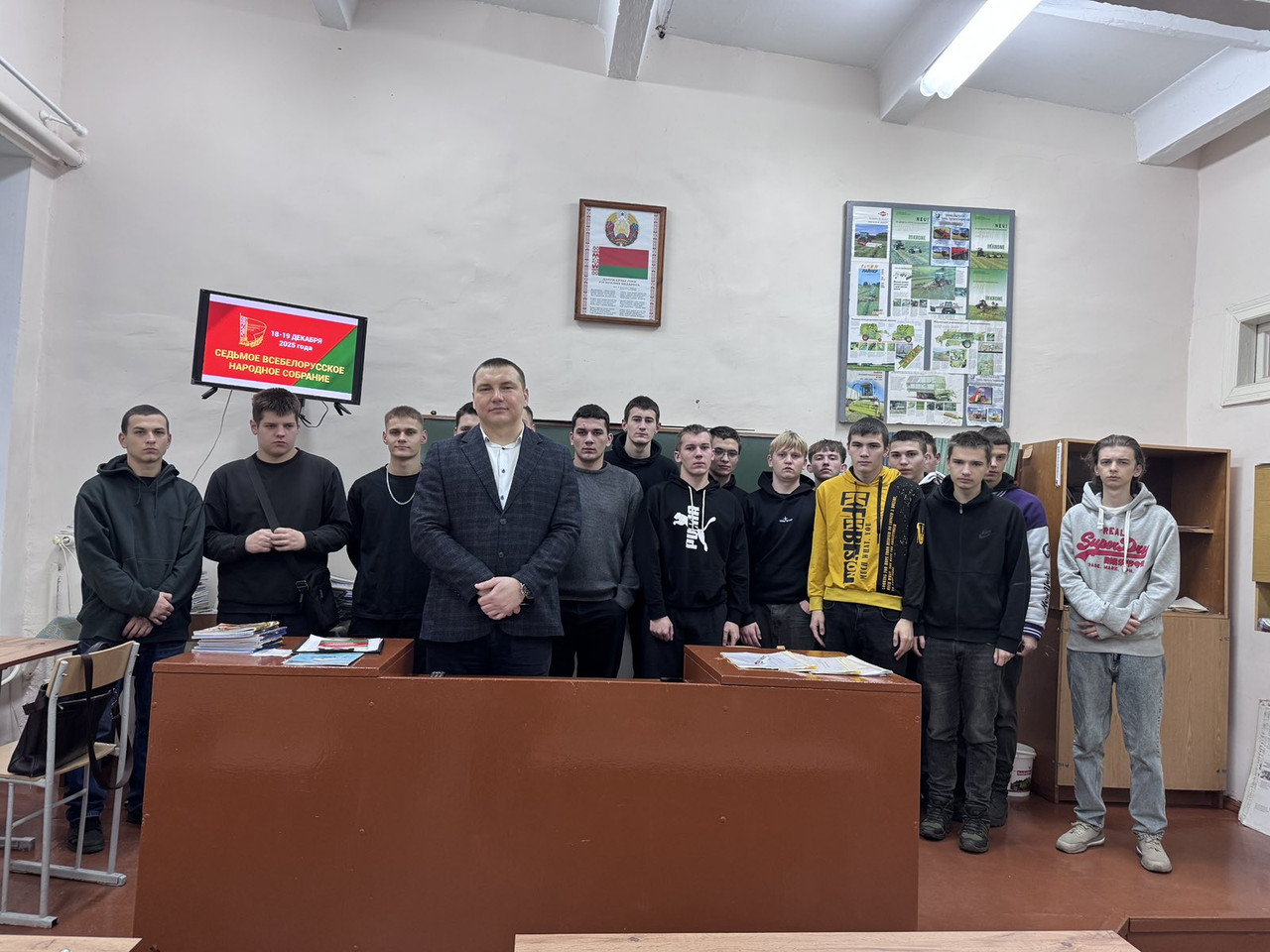 Адвокат юридической консультации Пинского района и г. Пинска Вадим Ровнейко выступил перед учащимися государственного аграрного колледжа с лекцией на тему: «Всебелорусское народное собрание 2025», в ходе который раскрыл основные вопросы повестки дня предстоящего заседания народного вече нашей страны.