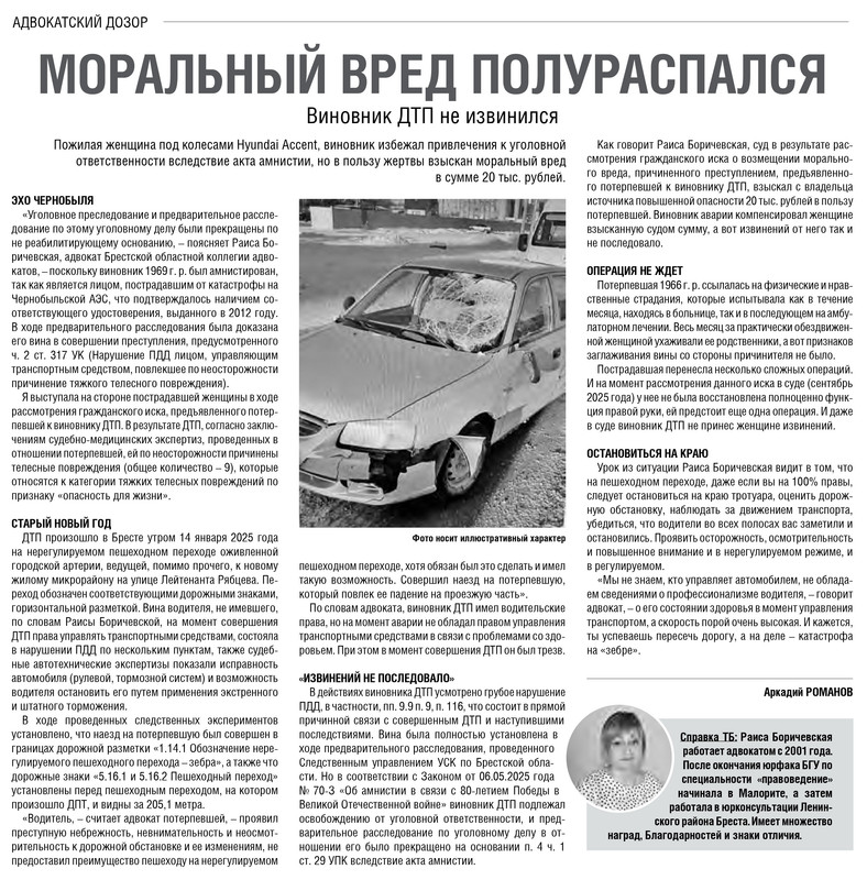 Очередная публикация с участием адвоката Брестской областной коллегии на страницах газеты «Транспортный вестник».