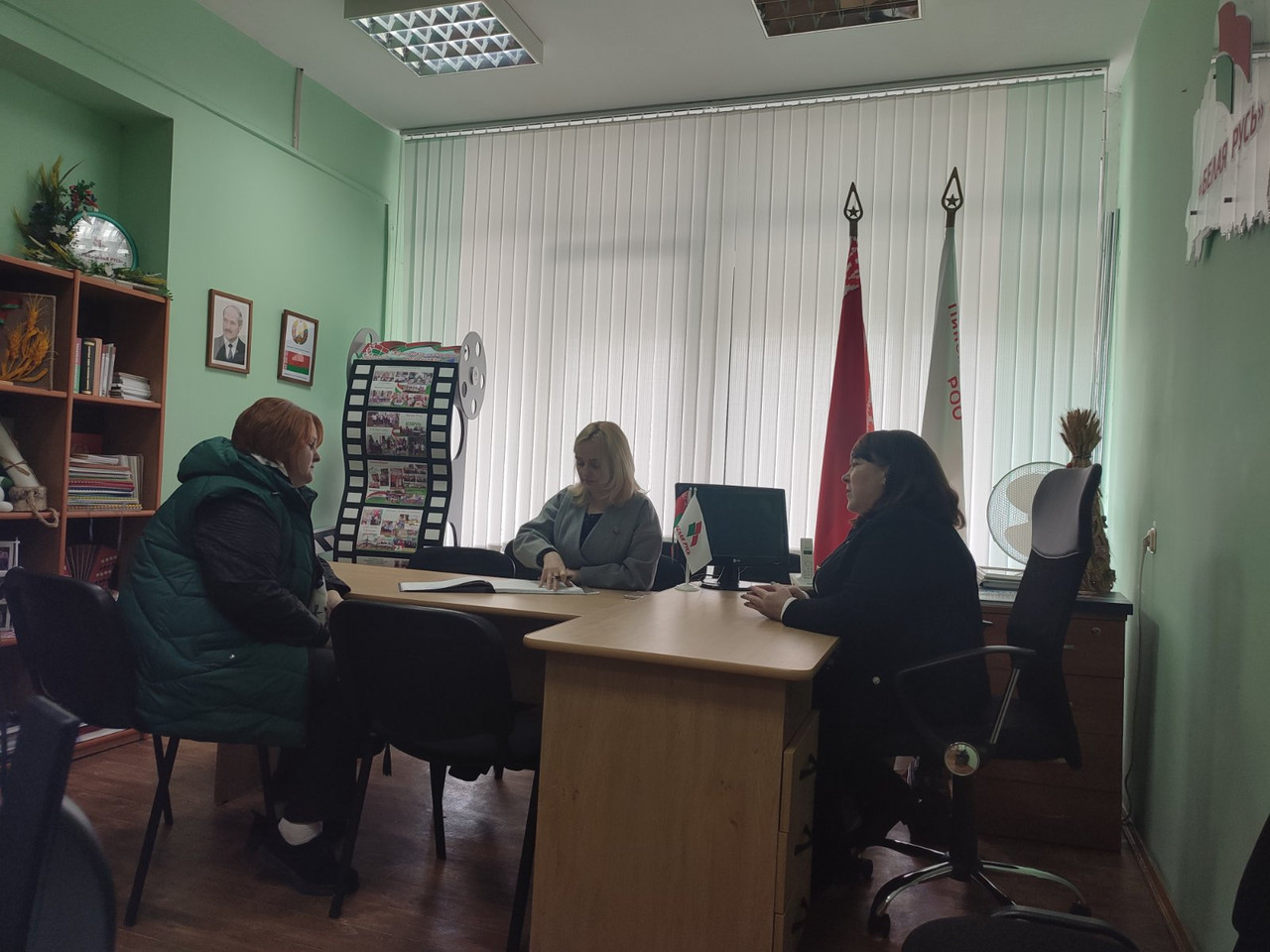 Заведующий юридической консультацией Пинского района и г. Пинска Татьяна Трофимова совместно с заведующим нотариальной конторой г. Пинска Ириной Сачковской провели приём граждан в общественной приёмной Пинской городской организации РОО «Белая Русь». В ходе приёма адвокатом были даны разъяснения по вопросам пенсионного обеспечения, взыскания задолженности с организаций, семейным спорам, вопросам наследования и отчуждения имущества.